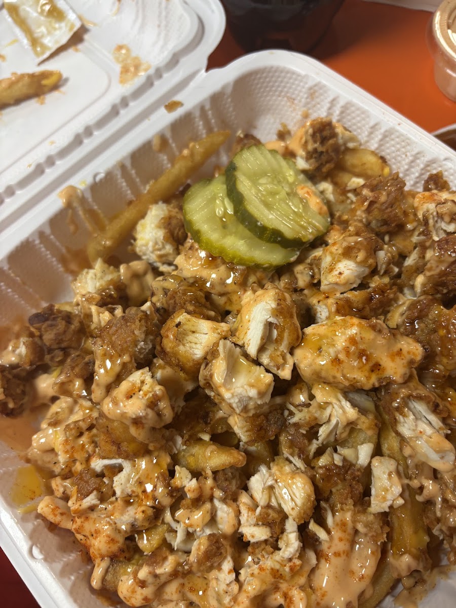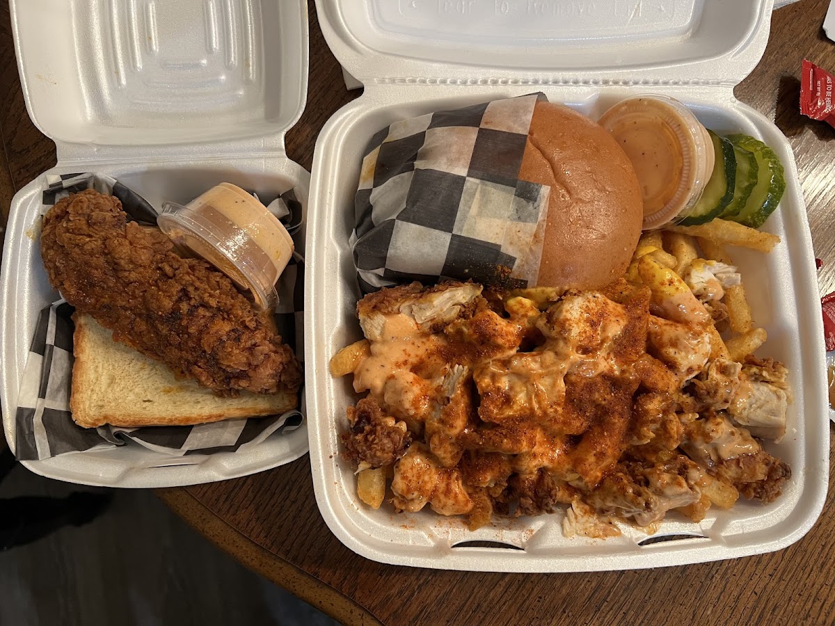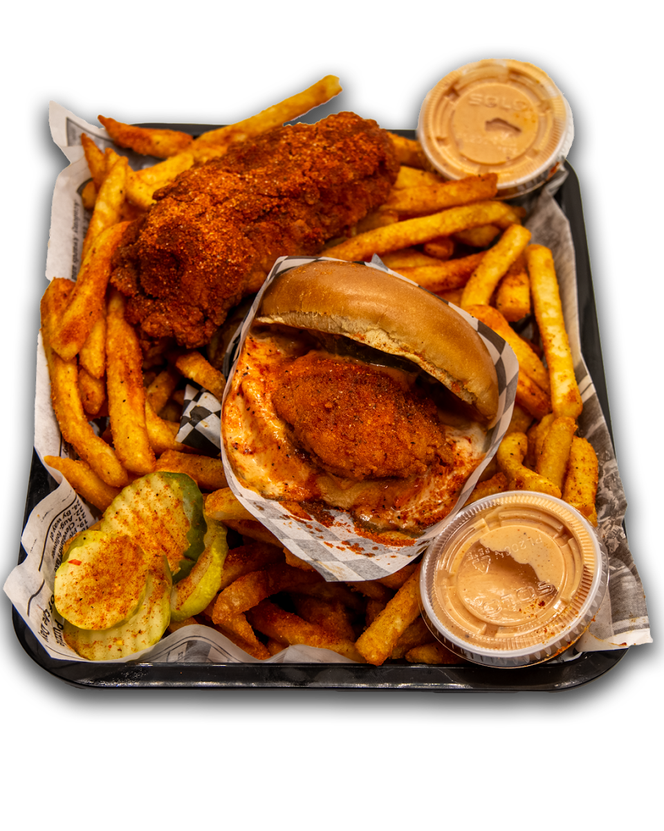 The menu is tight and focused, which usually tells me a kitchen knows its strengths. You’ll see tenders, sandwiches, sliders, and loaded fries, all built around hot chicken done the Nashville-inspired way. The chicken is marinated, breaded, fried, and then finished with a spice blend that’s brushed on while the meat is still hot. That last step matters. According to food science research from institutions like the Institute of Food Technologists, applying spice oil while food is hot helps fat-soluble flavors cling better, which explains why the heat here doesn’t just sit on the surface but sinks into every bite.